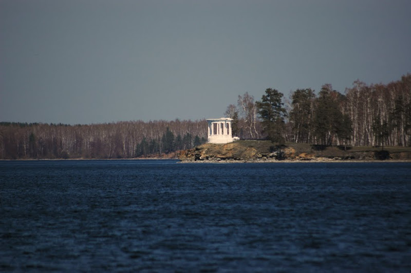 Вдалеке на небольшом мысе виднеется белоснежная "Беседка Курчатова" - визитная карточка города.